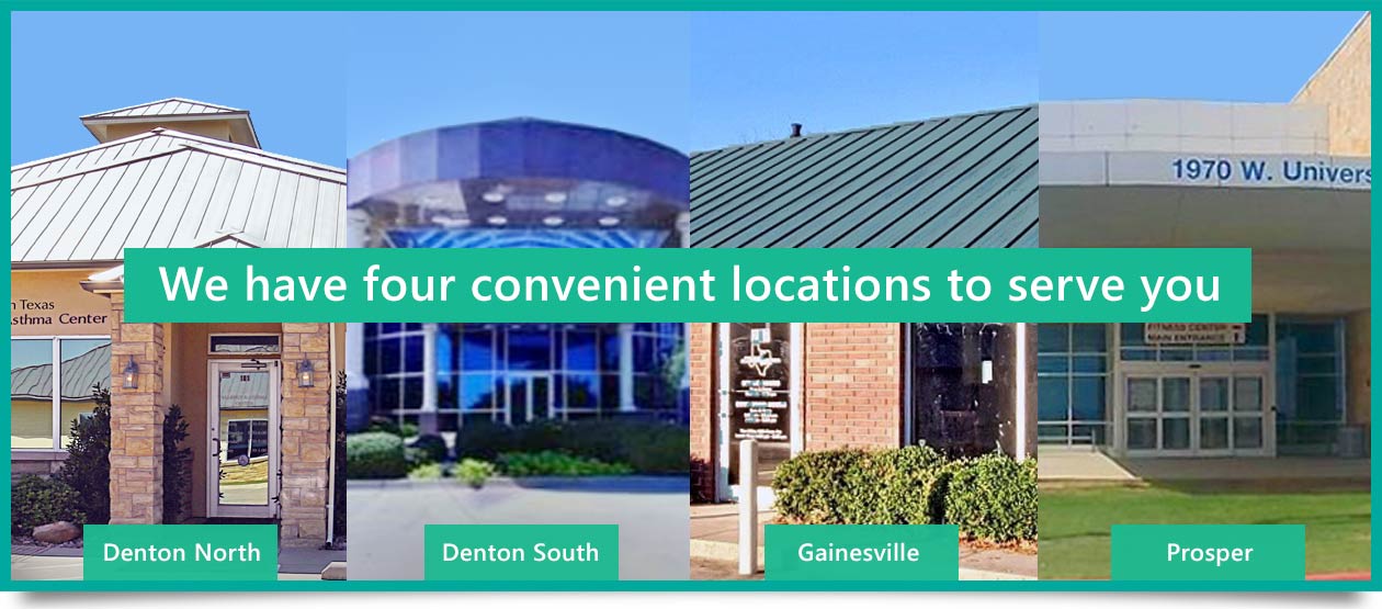 North Texas Allergy and Asthma Center is proud to be your Denton, Gainesville and Prosper Allergists. We take care of both pediatric and adult patients with allergies. We are here for you and your family and can help you overcome outdoor or indoor environmental allergies, food, drug or insect allergies, eczema, hives, skin conditions, asthma, sinus infections and immune disorders. Our allergy experts provide compassionate, individualized, and high-quality care for all our patients and treat them like family. NTAAC is the only Allergy & Immunology practice in Denton where all providers are board-certified by the American Board of Allergy and Immunology. You can rest assured that you will always see a board-certified Allergy-trained physician at North Texas Allergy & Asthma Center at any of our four offices.